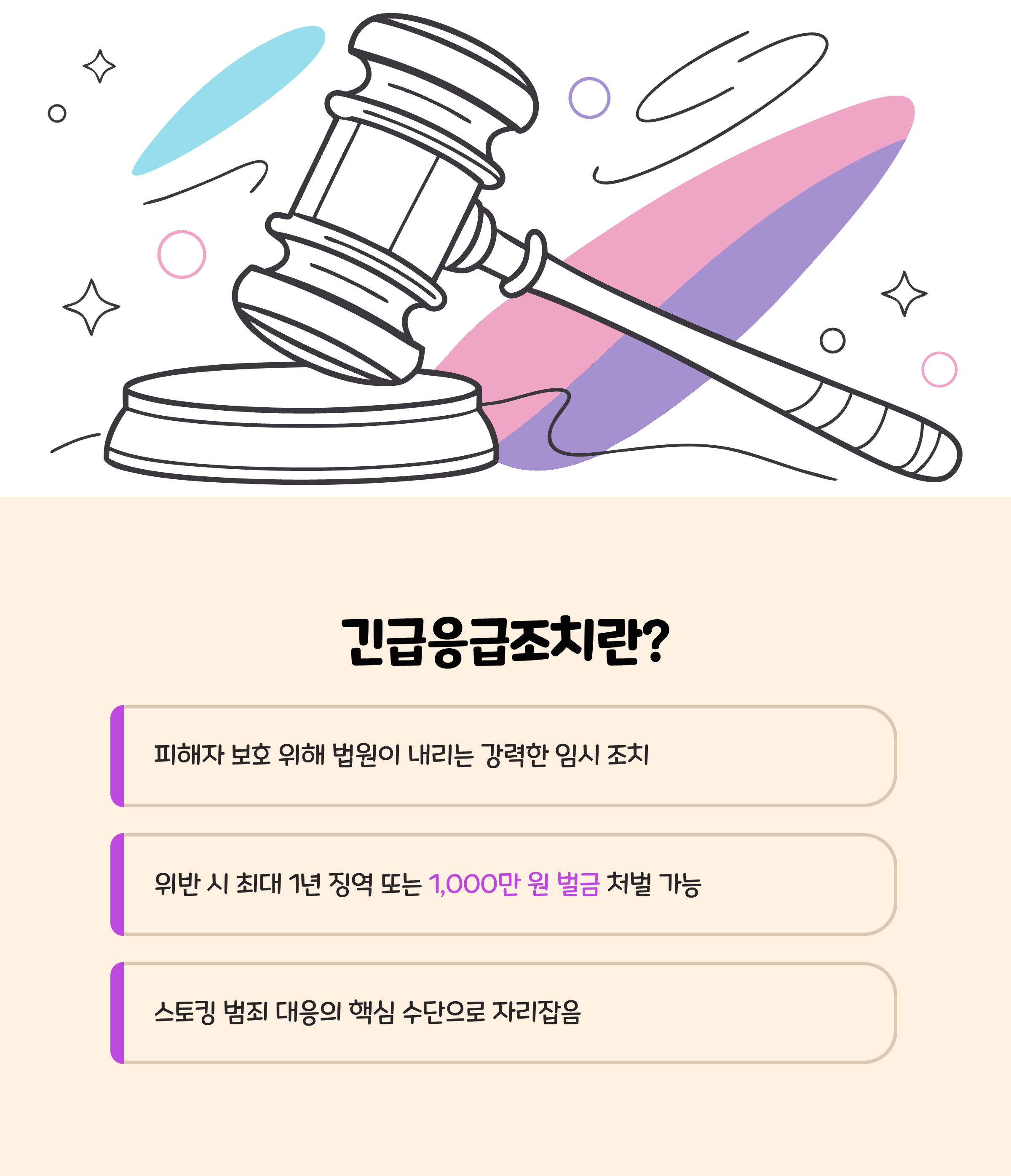 이 조치는 피해자가 급박한 위험에 노출될 경우를 대비해 즉각적으로 법원이 내리는 보호 명령으로, 스토킹 피해의 반복과 확산을 막는 데 매우 중요한 역할을 합니다.