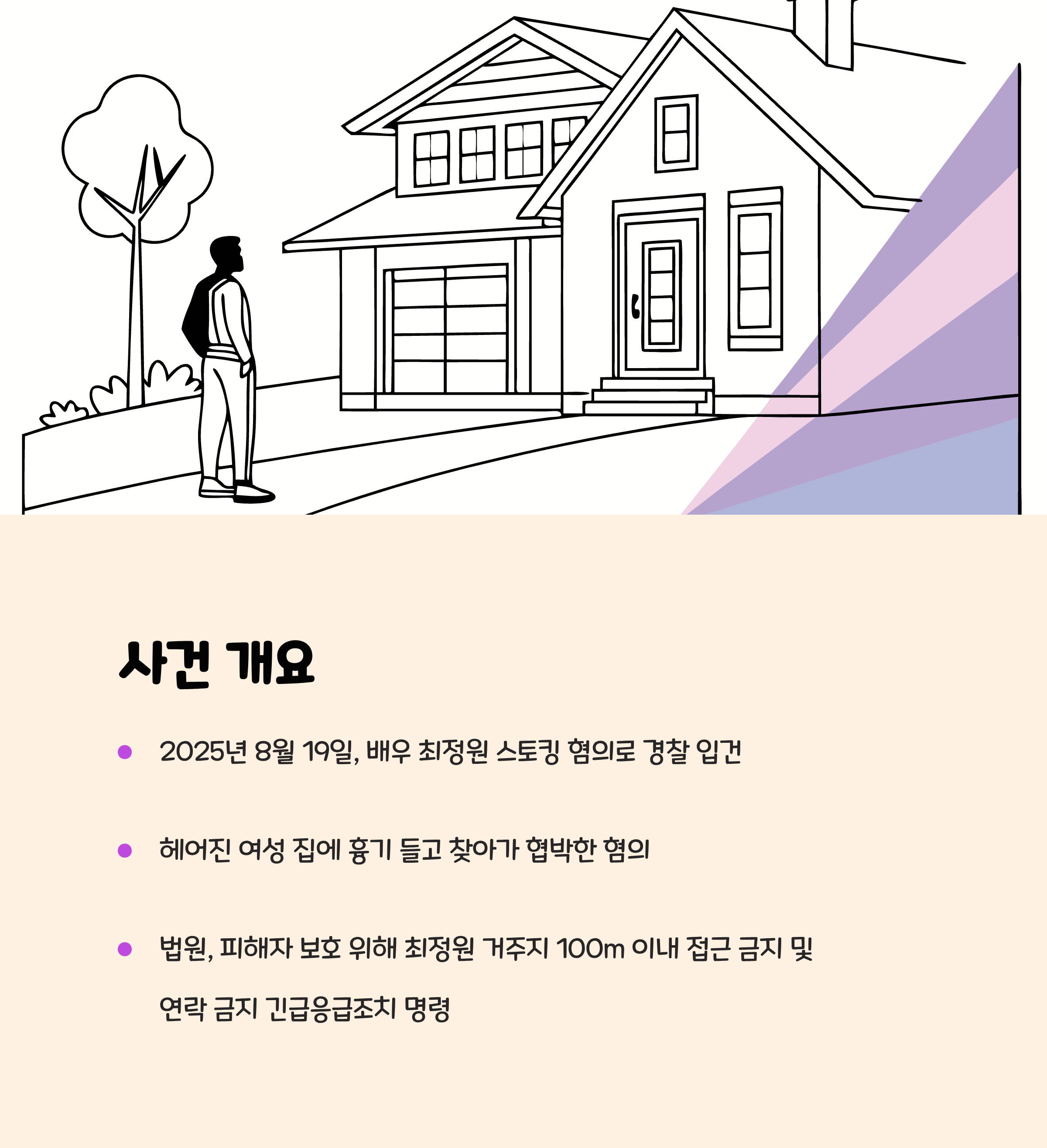 스토킹은 개인의 정신적·신체적 안전을 위협하는 심각한 범죄입니다. 최정원 사건은 유명 인사라는 점에서 관심이 집중되고 있지만, 누구라도 피해자가 될 수 있는 문제이기 때문에 더욱 엄중한 대응과 사회적 관심이 필요합니다.