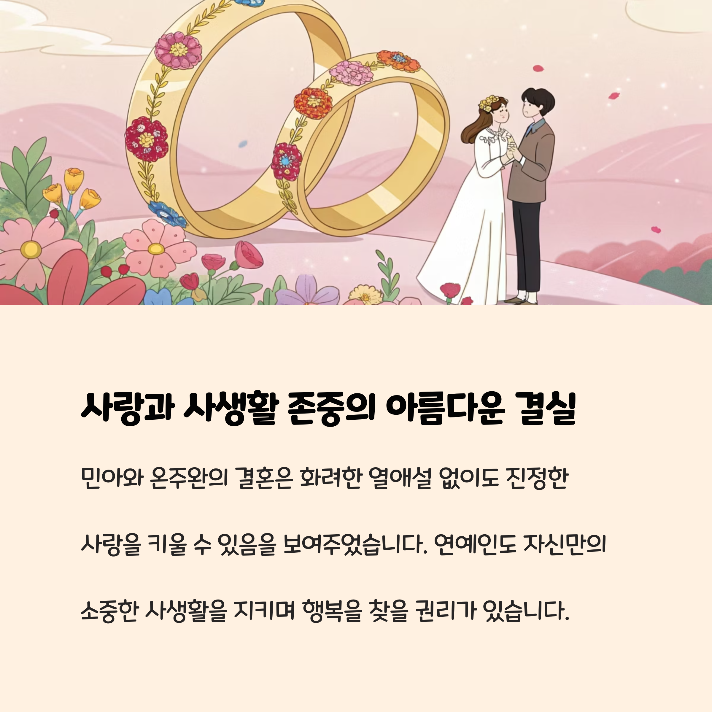 결혼을 준비하거나, 연예인 커플의 사생활 관리에 관심이 많은 분들께 이번 사례는 큰 참고가 될 수 있습니다. 조용한 만남과 진정성 있는 소통, 그리고 팬에 대한 진심 어린 감사가 어떻게 아름다운 결실로 이어질 수 있는지, 민아와 온주완의 이야기가 좋은 답이 될 것입니다.