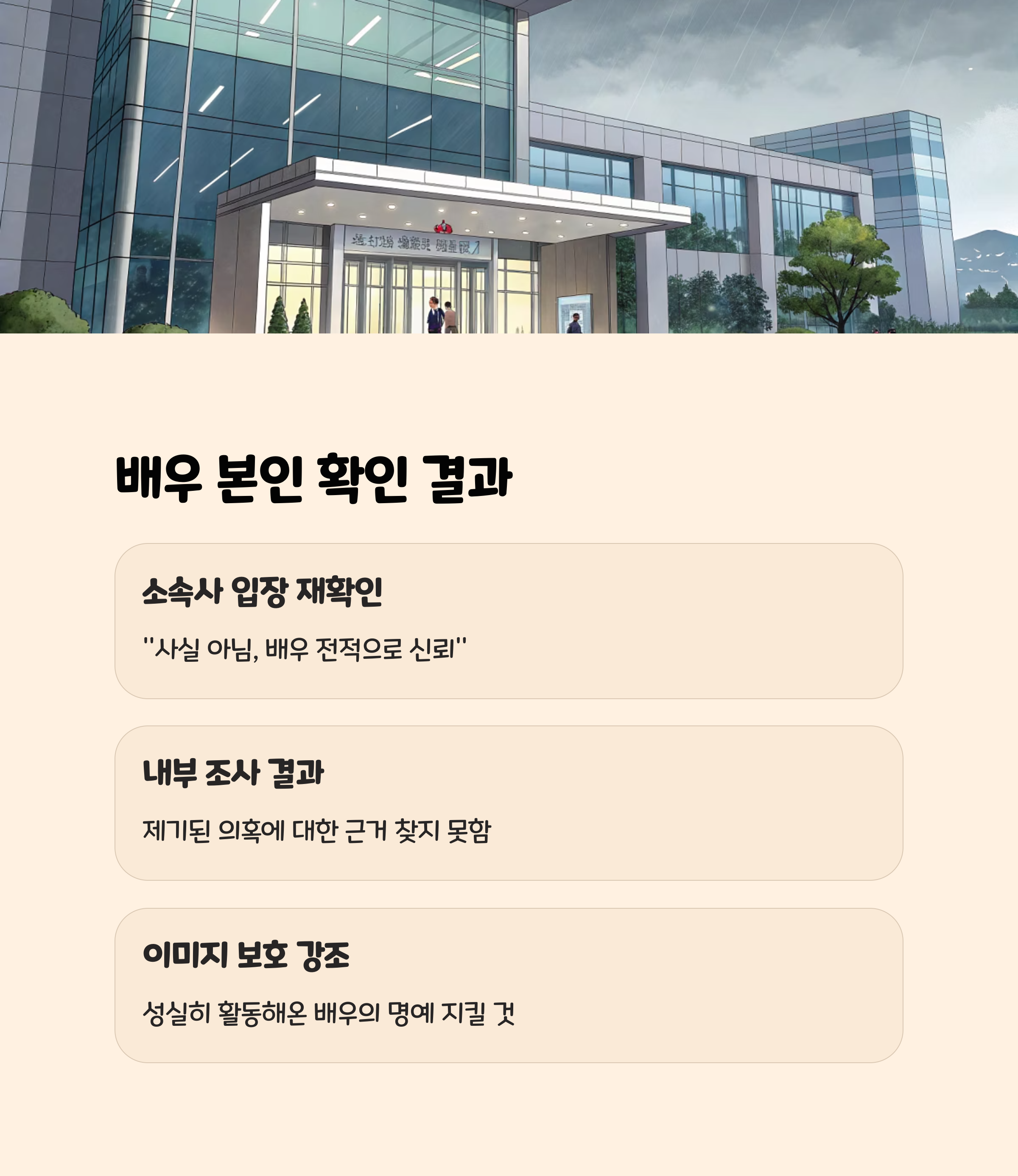- “사실 확인 없는 추측성 보도와 유포는 배우와 가족에게도 큰 상처가 될 수 있으니 무분별한 확산을 자제해 달라.”