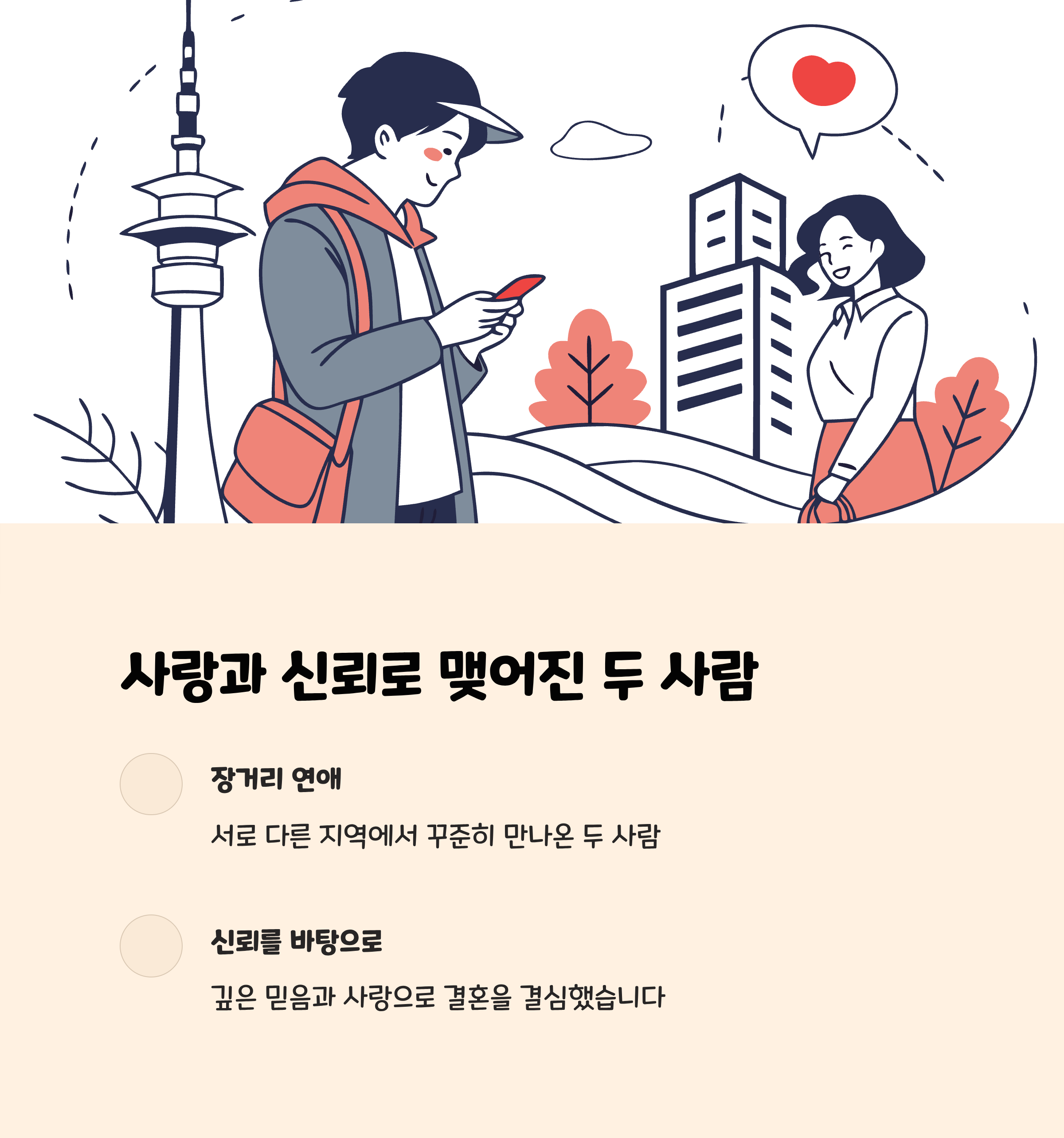 | 연애기간 | 약 2년, 한차례 이별 후 재회, 장거리 연애 지속 |