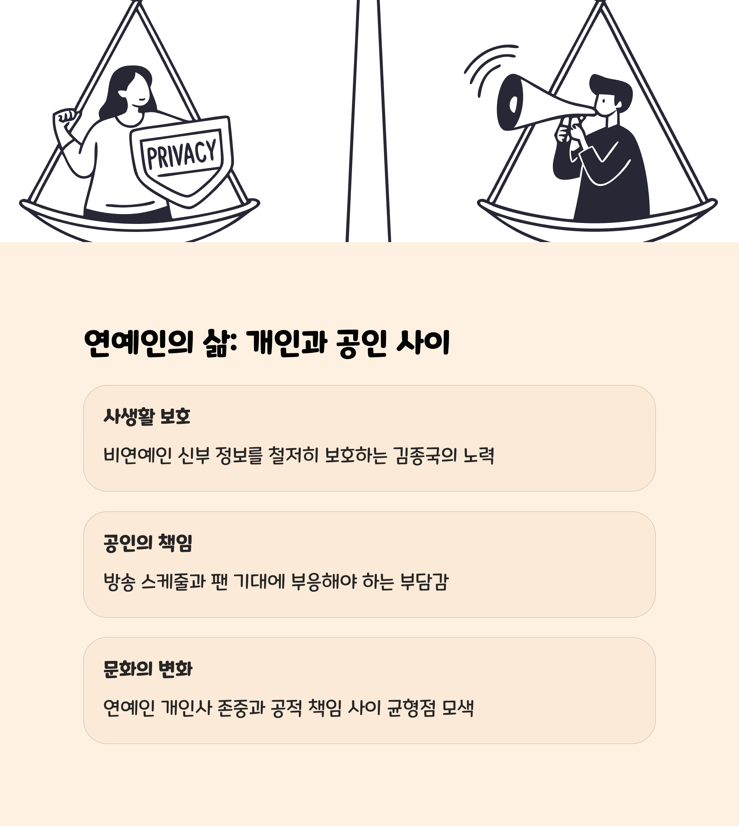 김종국 님의 결혼 발표는 많은 축하 속에 진행되었지만, 급박한 결혼식 준비와 방송 스케줄 조정으로 인해 생긴 ‘민폐 논란’은 서로에 대한 배려가 부족해 불거진 측면이 큽니다. 유재석 씨도 갑작스러운 사회 요청에 당황했지만 최선을 다하고 있으며, 김종국 님 역시 예비 신부를 배려해 비공개 결혼식을 계획하는 등 신중한 자세를 보여주고 있습니다.