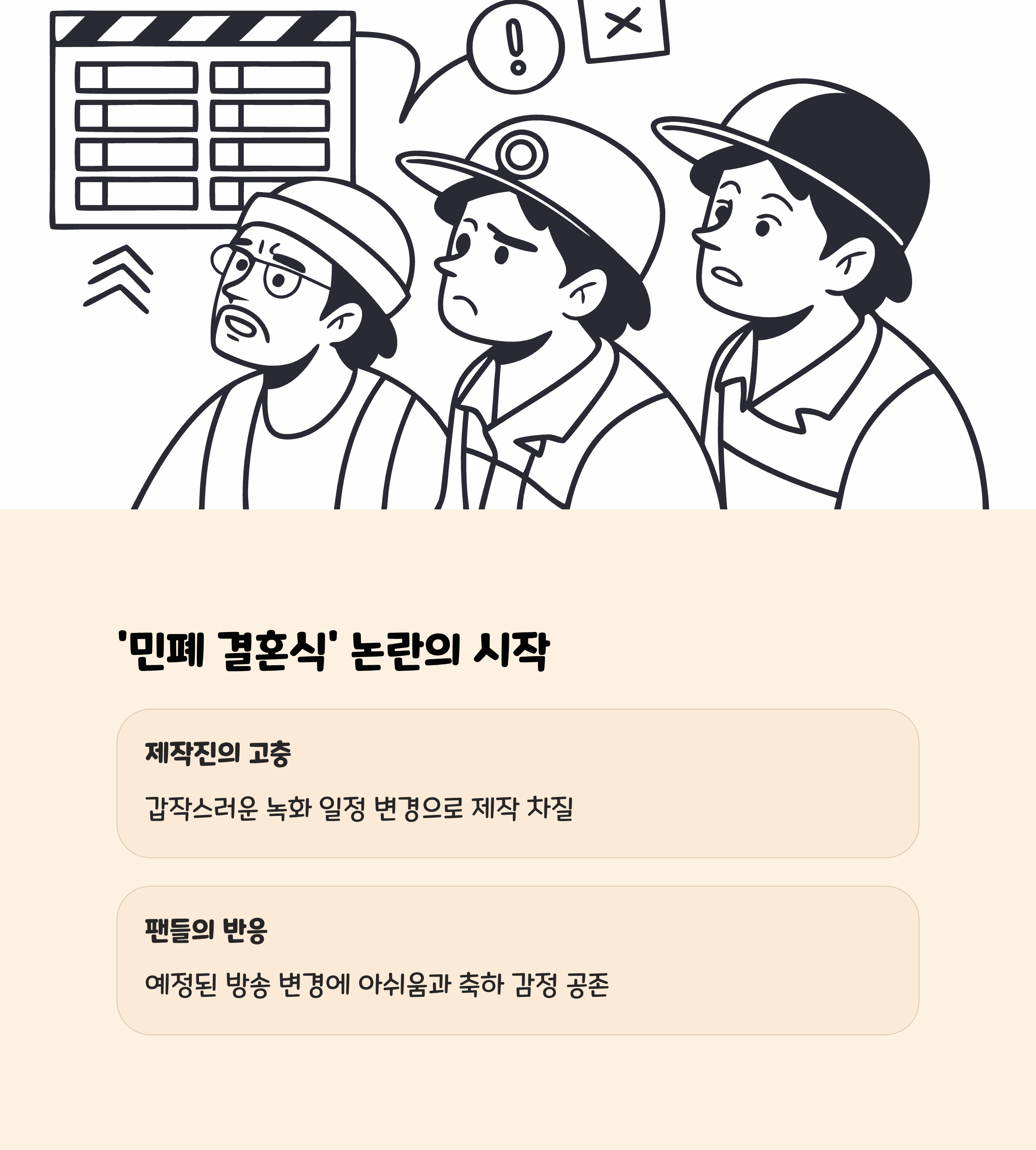 ‘민폐 결혼식’이라는 지적 - 유재석과 제작진, 방송 출연자들이 갑작스러운 스케줄 변경으로 어려움 겪음