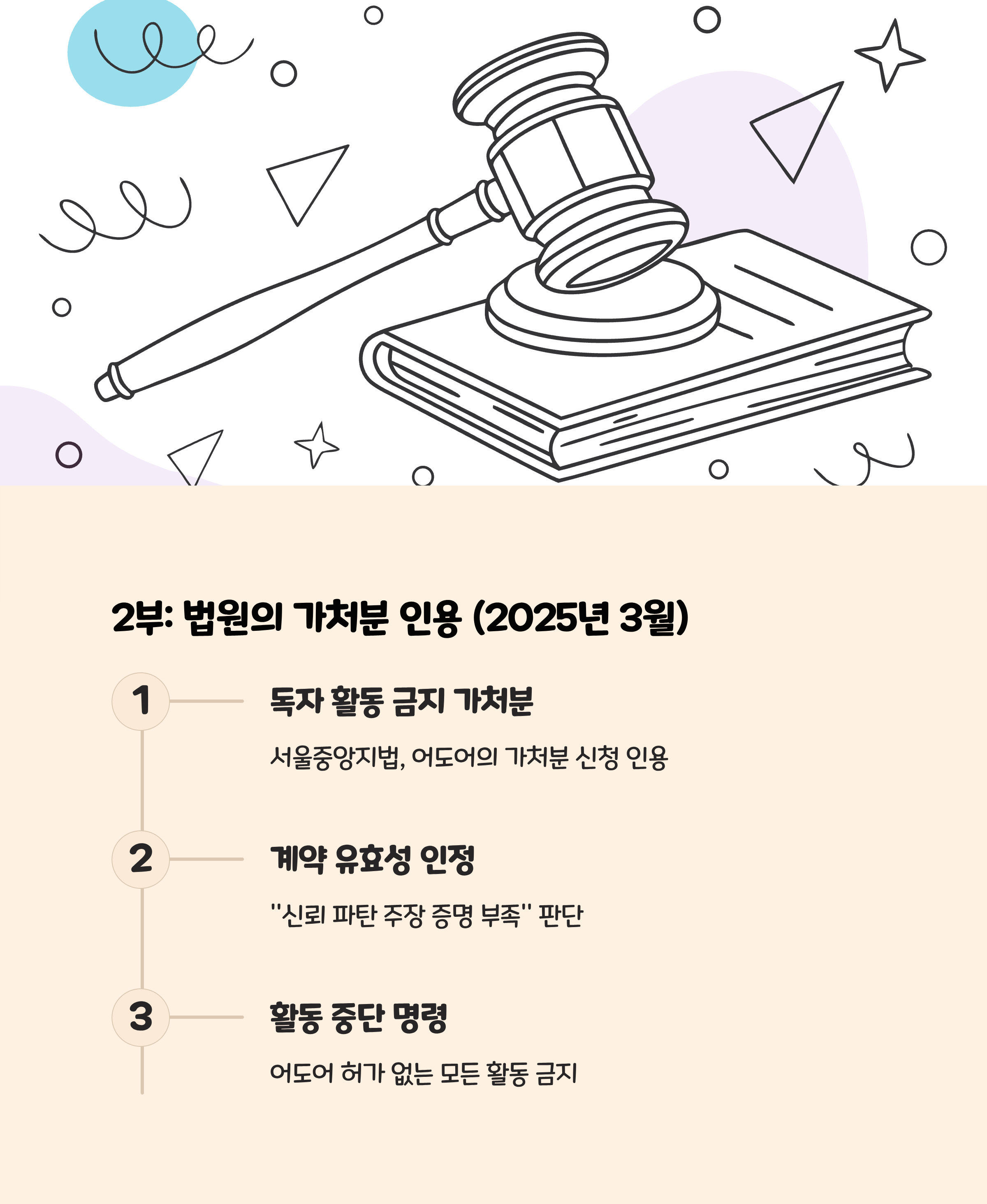 | 법원 가처분 결정 | 2025년 3월, 뉴진스 독자 활동 금지 가처분 인용 |