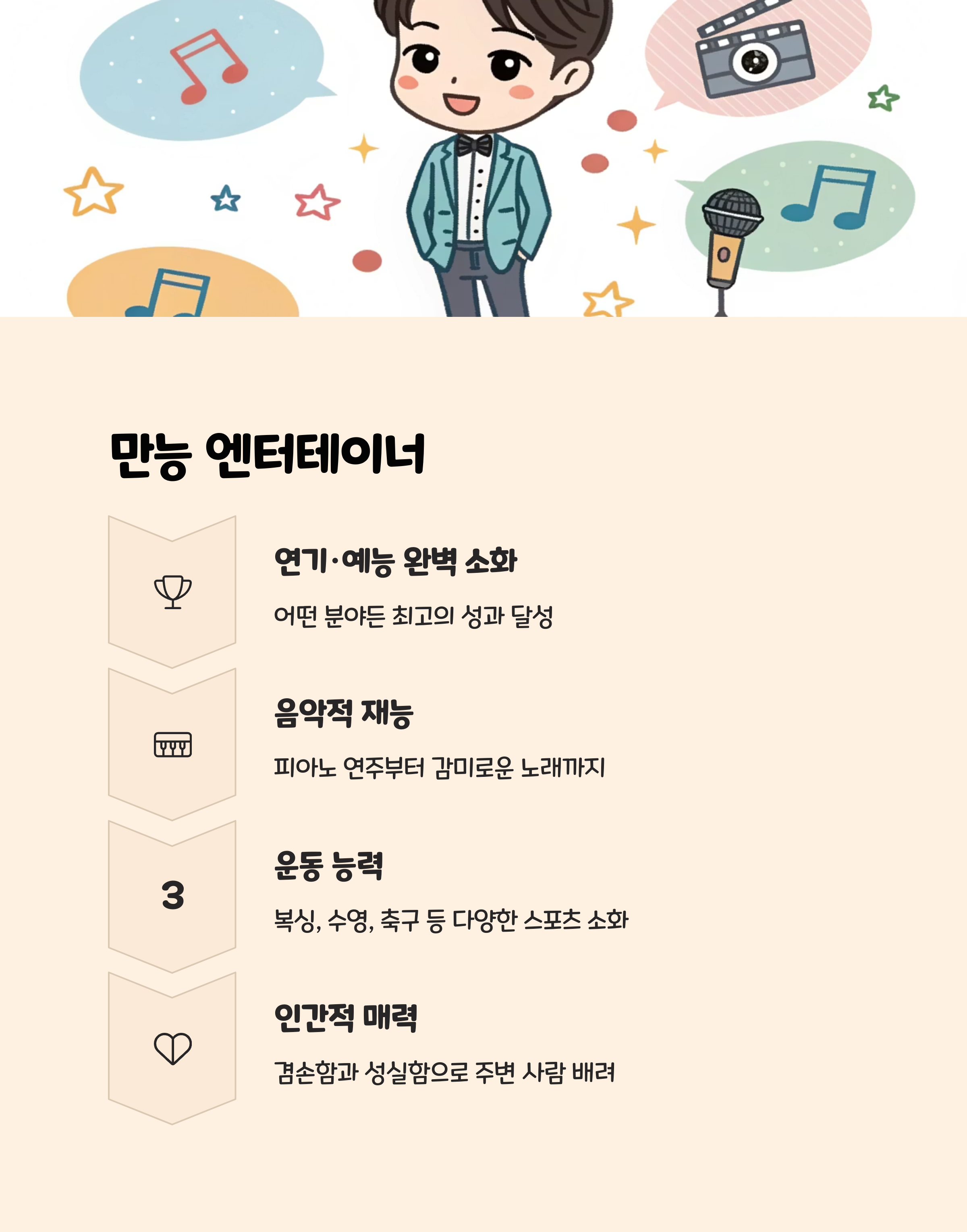 - 철저한 준비와 몰입: ‘굿보이’에서는 6개월 이상 복싱 훈련, 예능에서는 매 미션마다 최선을 다하는 모습.