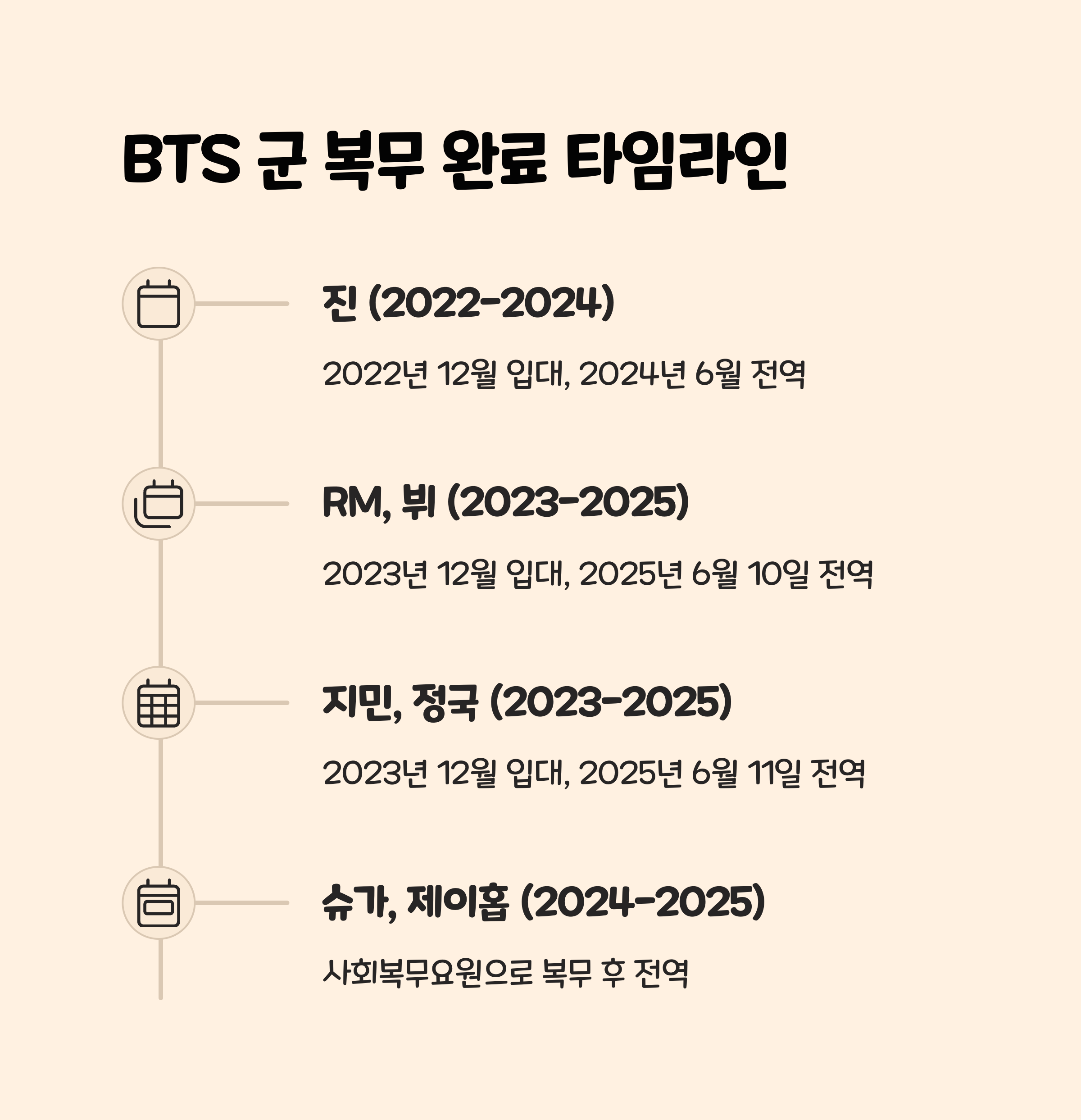 1. BTS 군 복무 현황: 2025년, 모두 돌아온다