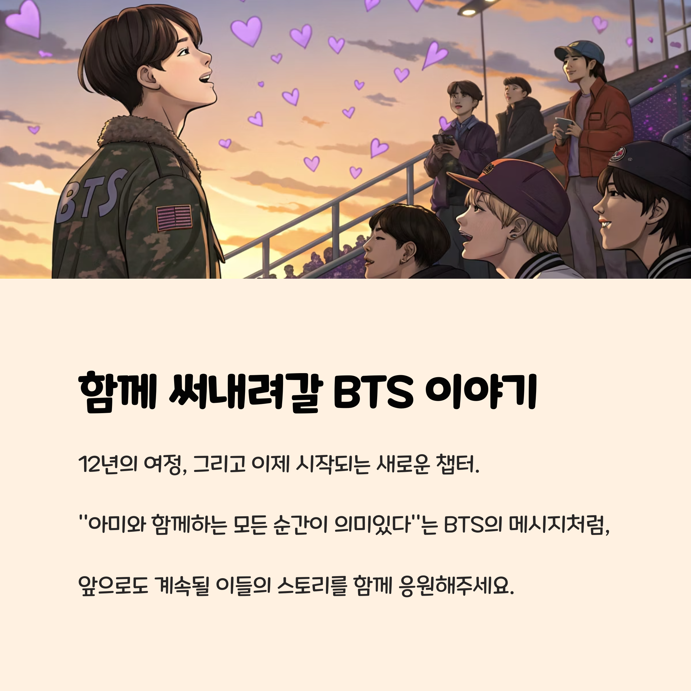 본 내용은 연합뉴스, 디스패치, BNT뉴스, 코리아넷뉴스 등 주요 언론사와 공식 기관의 최신 기사, 그리고 하이브의 공식 발표를 바탕으로 2025년 6월 BTS 멤버 전역과 완전체 복귀 소식을 종합해 정리한 것입니다.
