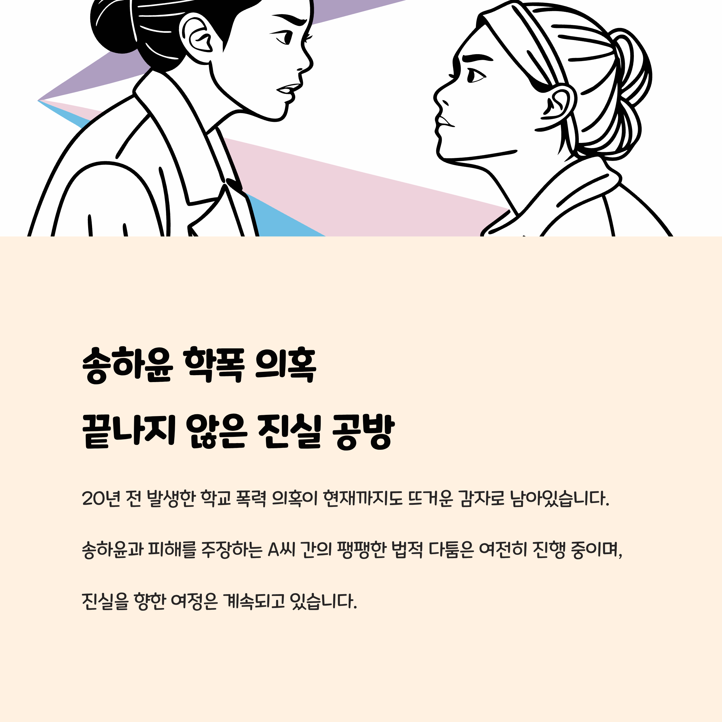 | 2024년 4월 | A씨, JTBC 방송 통해 송하윤의 학폭 폭로 |