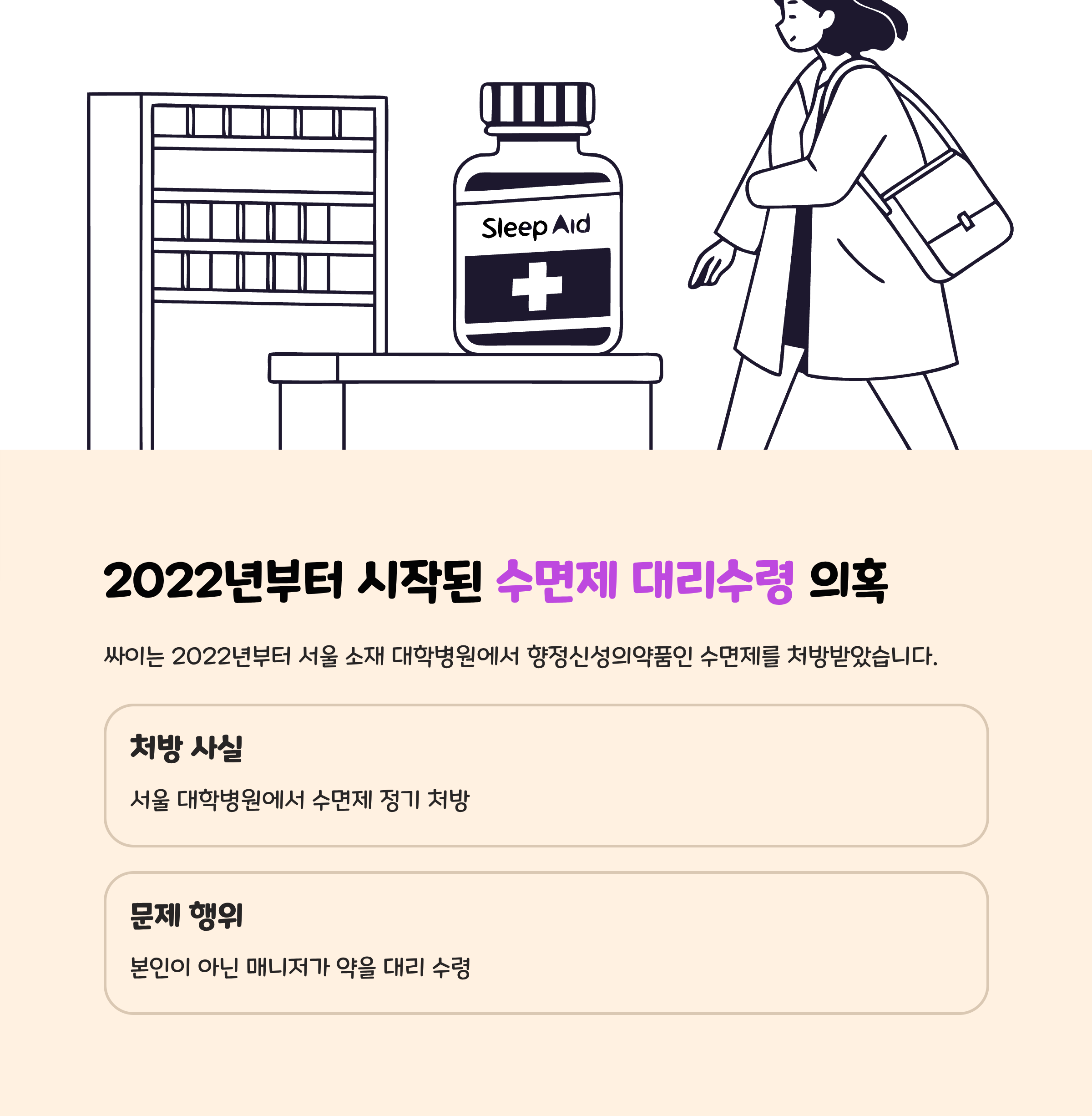 가수 싸이가 2022년부터 서울의 한 대학병원에서 향정신성 의약품인 수면제 '자낙스'와 '스틸녹스'를 대면 진료 없이 비대면 처방받고, 본인이 아닌 매니저를 통해 약을 대신 수령한 사실이 경찰 수사로 밝혀졌습니다. 이에 따라 서울 서대문경찰서는 의료법 위반 혐의로 싸이와 해당 의사를 입건하여 수사를 진행 중입니다.