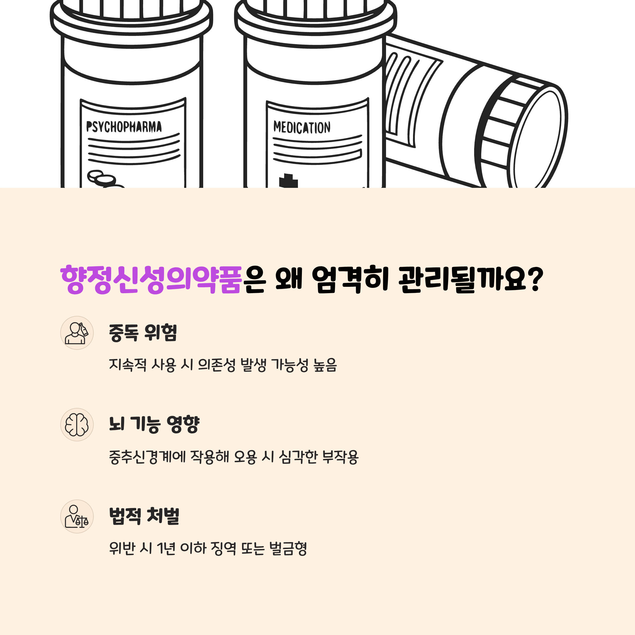 향정신성의약품 관리 중독성·의존성 위험 높아 엄격하게 규제됨 위반 시 법적 제재 매우 엄중