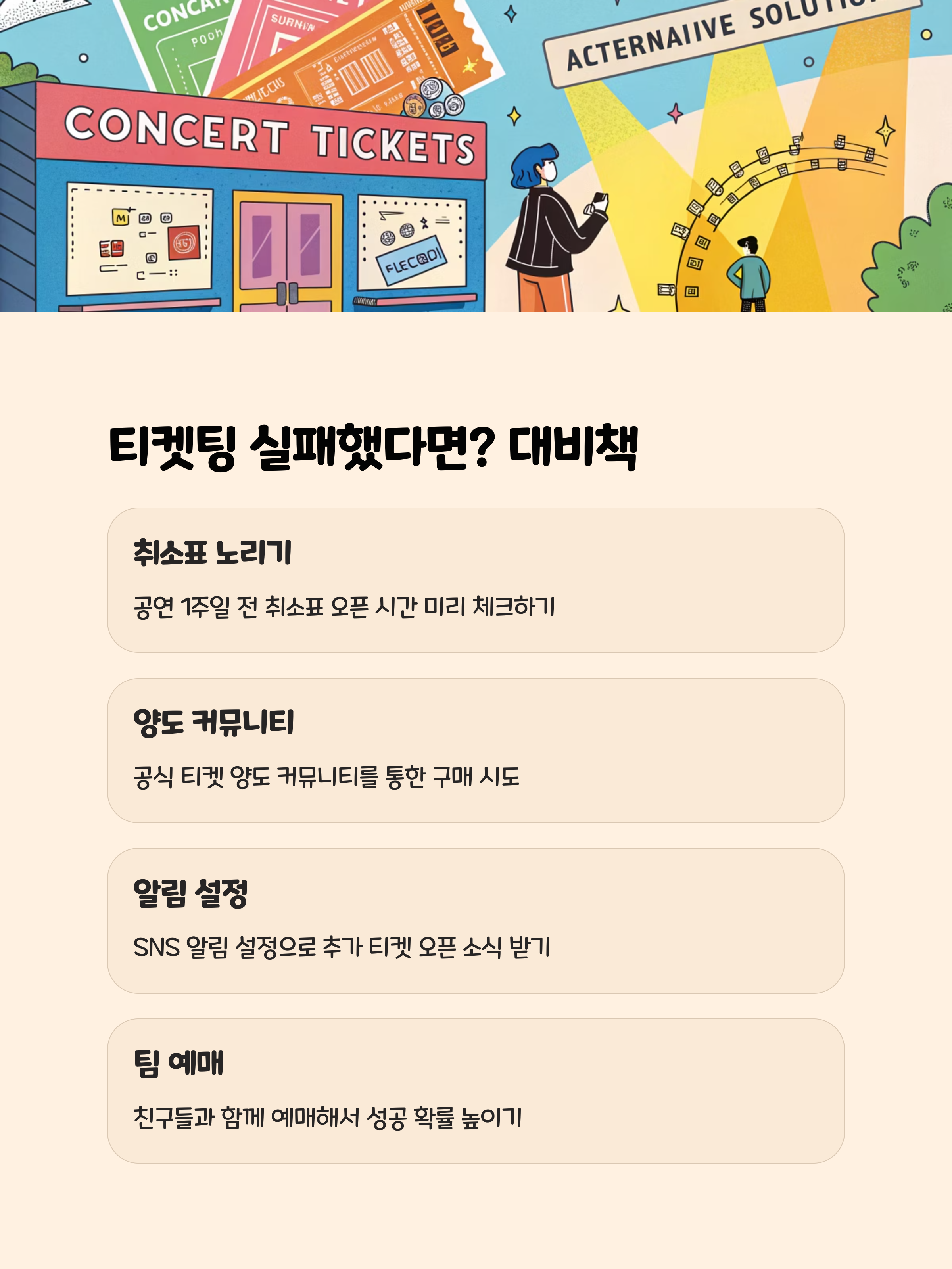 취소표는 예매 후 15분 이내 미결제 시 자동으로 풀리며, 이후에도 예매자가 결제를 포기하면 실시간으로 재오픈됩니다. 예매 후 10~30분 단위로 취소표가 생길 수 있으니, 예매 실패 시에도 꾸준히 새로고침하며 도전해 보세요.
