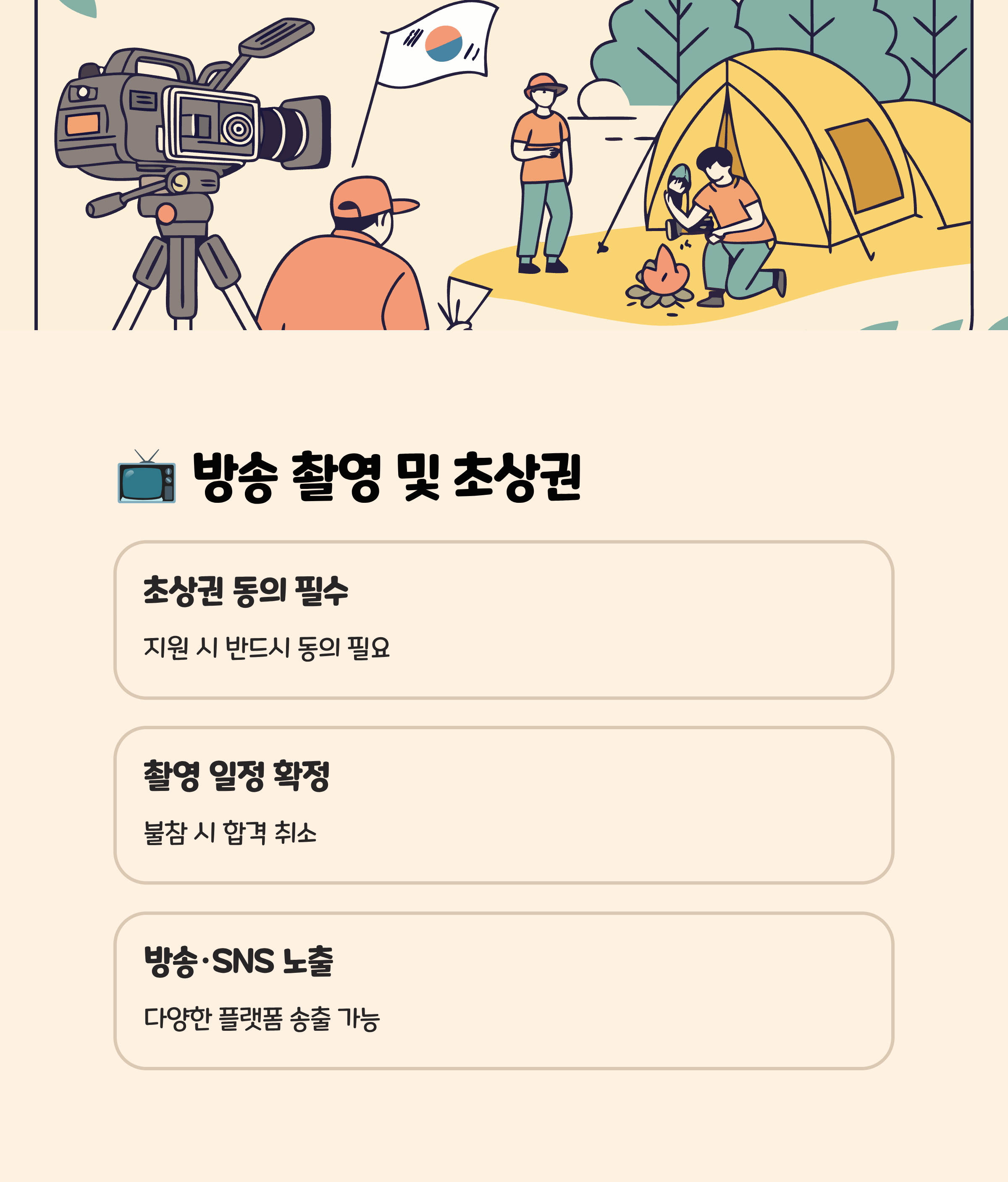 • 방송 촬영용으로 초상권, 방송물 사용 동의 필수