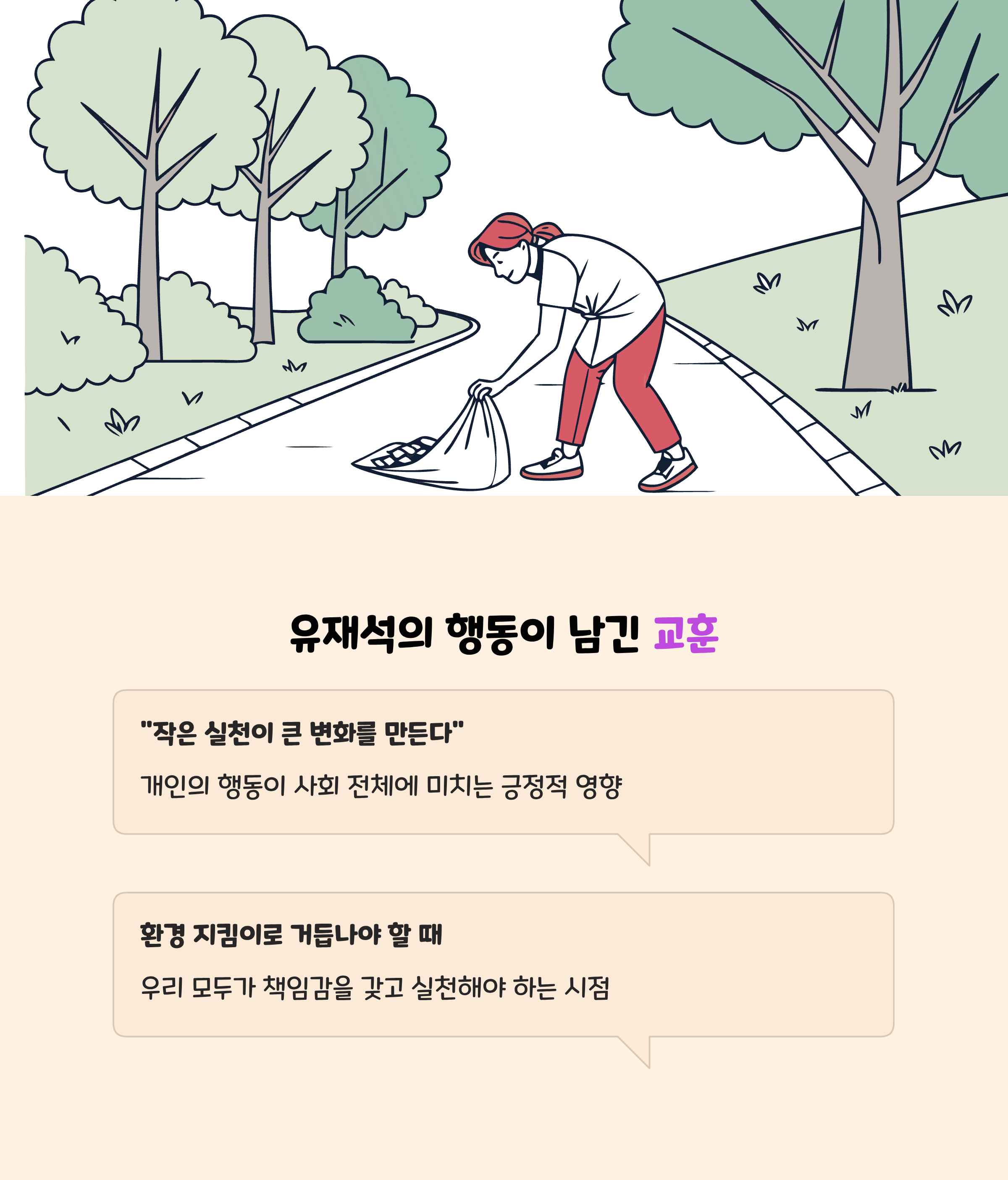유재석 씨는 “드셨으면 버리셔야 한다”며 누구나 책임감을 가지고 환경을 지켜야 한다고 강조했습니다. 그의 행동은 환경 의식 고취와 무단투기 근절에 대한 사회적 관심 촉구 메시지입니다.