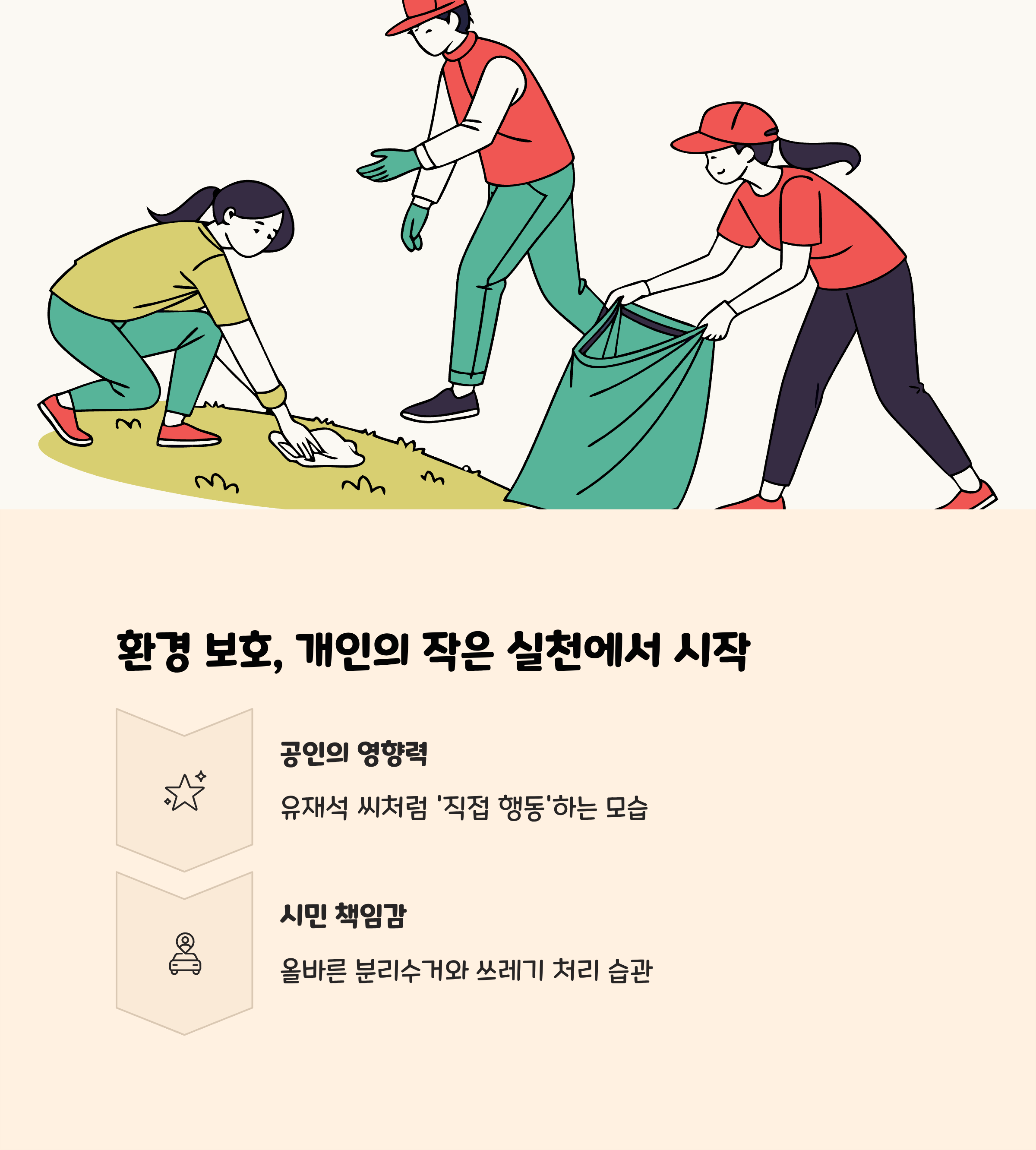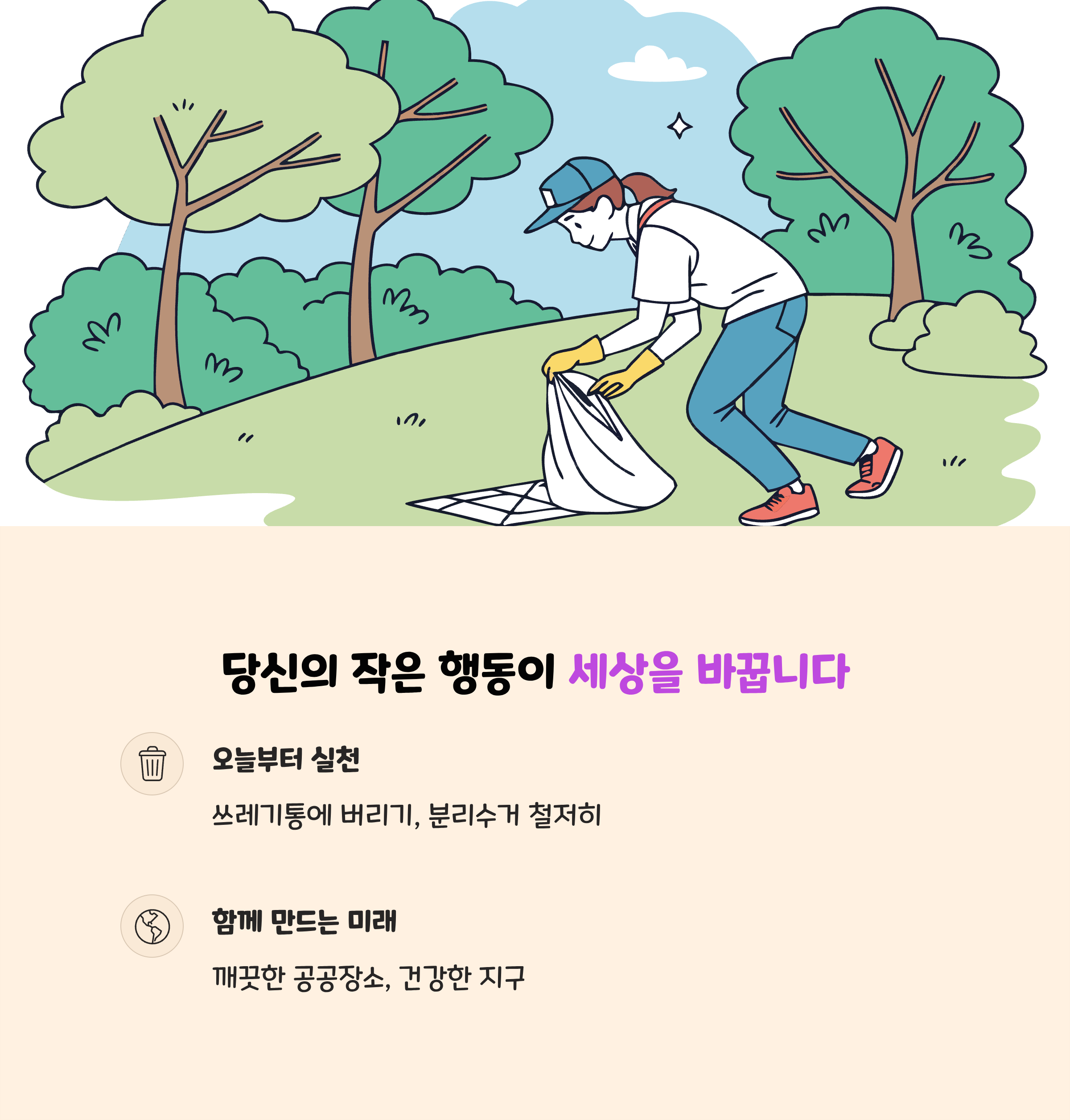 실천 방안 쓰레기는 쓰레기통에, 분리수거 철저, 공공캠페인 참여, 무단투기 방지 시민 노력 필요