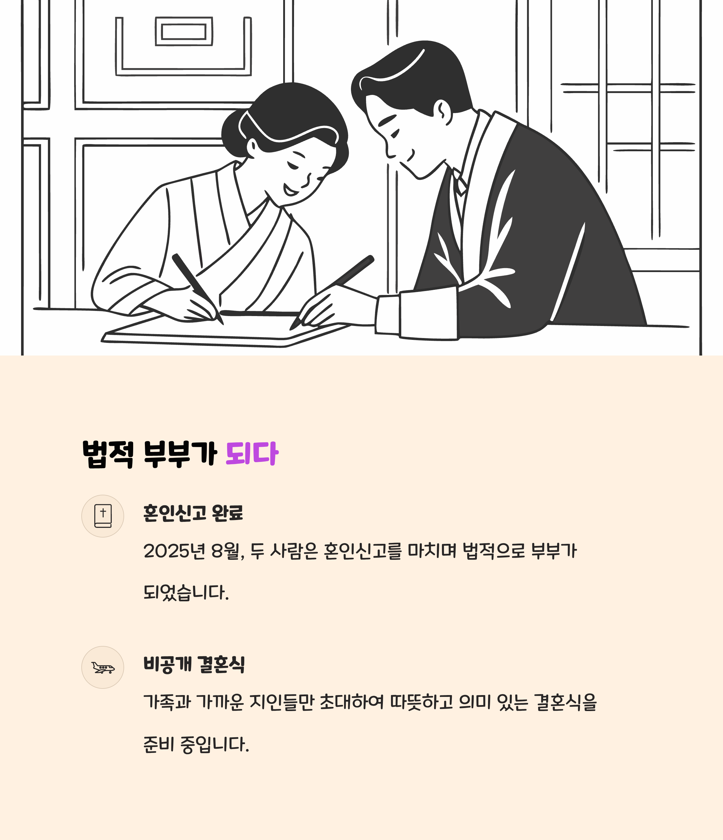 혼인신고 완료 날짜 2025년 8월 (법적 부부 상태)