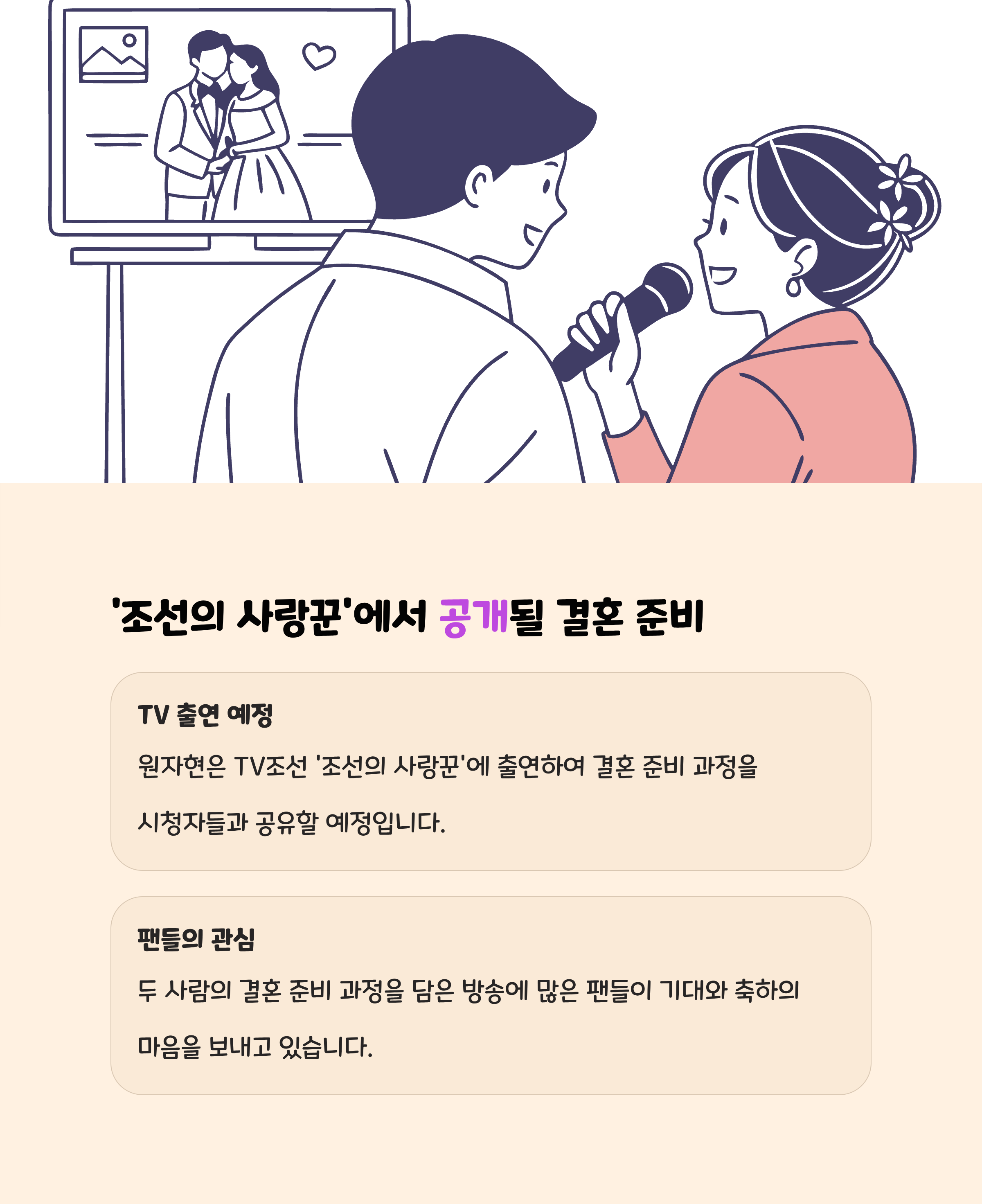 두 사람은 2025년 9월 8일 방송 예정인 TV조선 ‘조선의 사랑꾼’에 함께 출연합니다. 이 프로그램에서 결혼 준비 과정과 일상, 서로에 대한 애정을 공개하며 대중과 소통할 예정입니다.