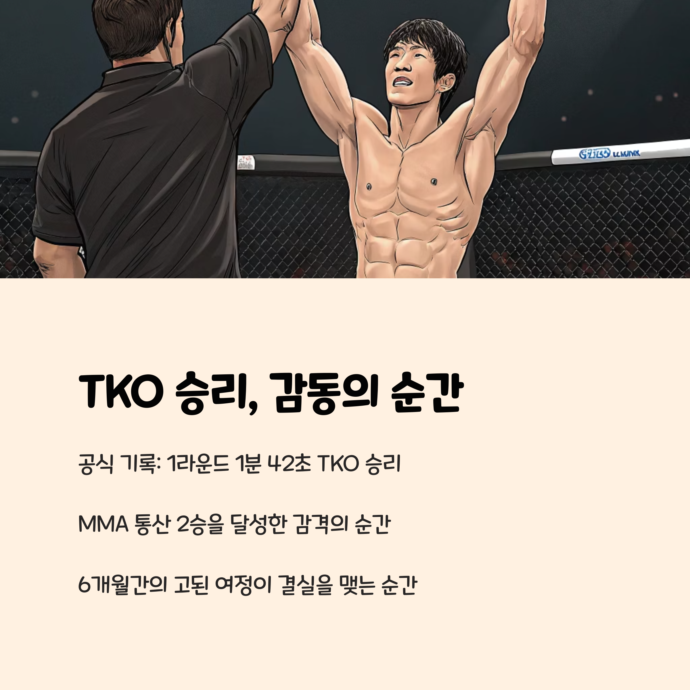 2025년 6월 28일 서울 장충체육관에서 열린 로드 FC 073 스페셜 매치에서 윤형빈은 밴쯔를 상대로 1라운드 1분 42초 만에 TKO(테크니컬 노크아웃) 승리를 거뒀습니다. 강력한 라이트 훅과 파운딩으로 상대를 압도하며, 본인의 마지막 격투기 시합을 멋지게 마무리했습니다. 이 경기는 단순한 이벤트 매치가 아니었습니다. 패배한 쪽이 유튜브 채널을 삭제해야 한다는 파격적인 조건이 걸려 있었고, 윤형빈은 “너무 이기고 싶었다. 그 염원이 닿은 것 같다”며 승리 후 소감을 밝혔습니다.