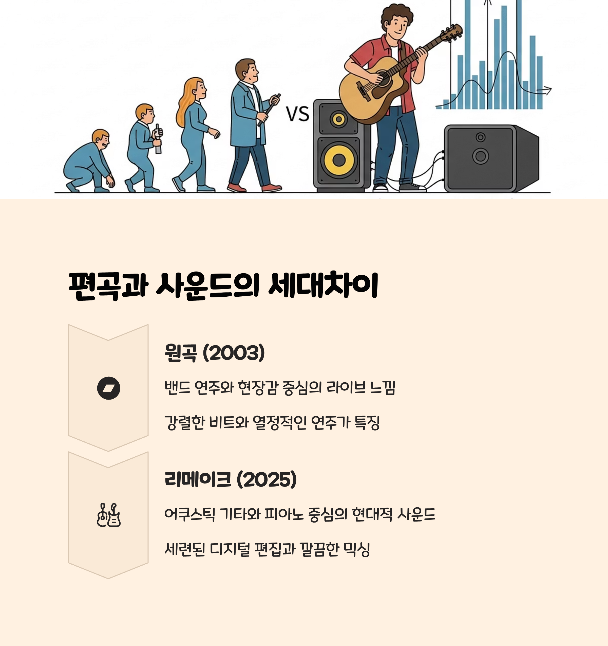 2003년 원곡과 달리 2025년 리메이크에서 가장 크게 바뀐 부분은 무엇인가요?