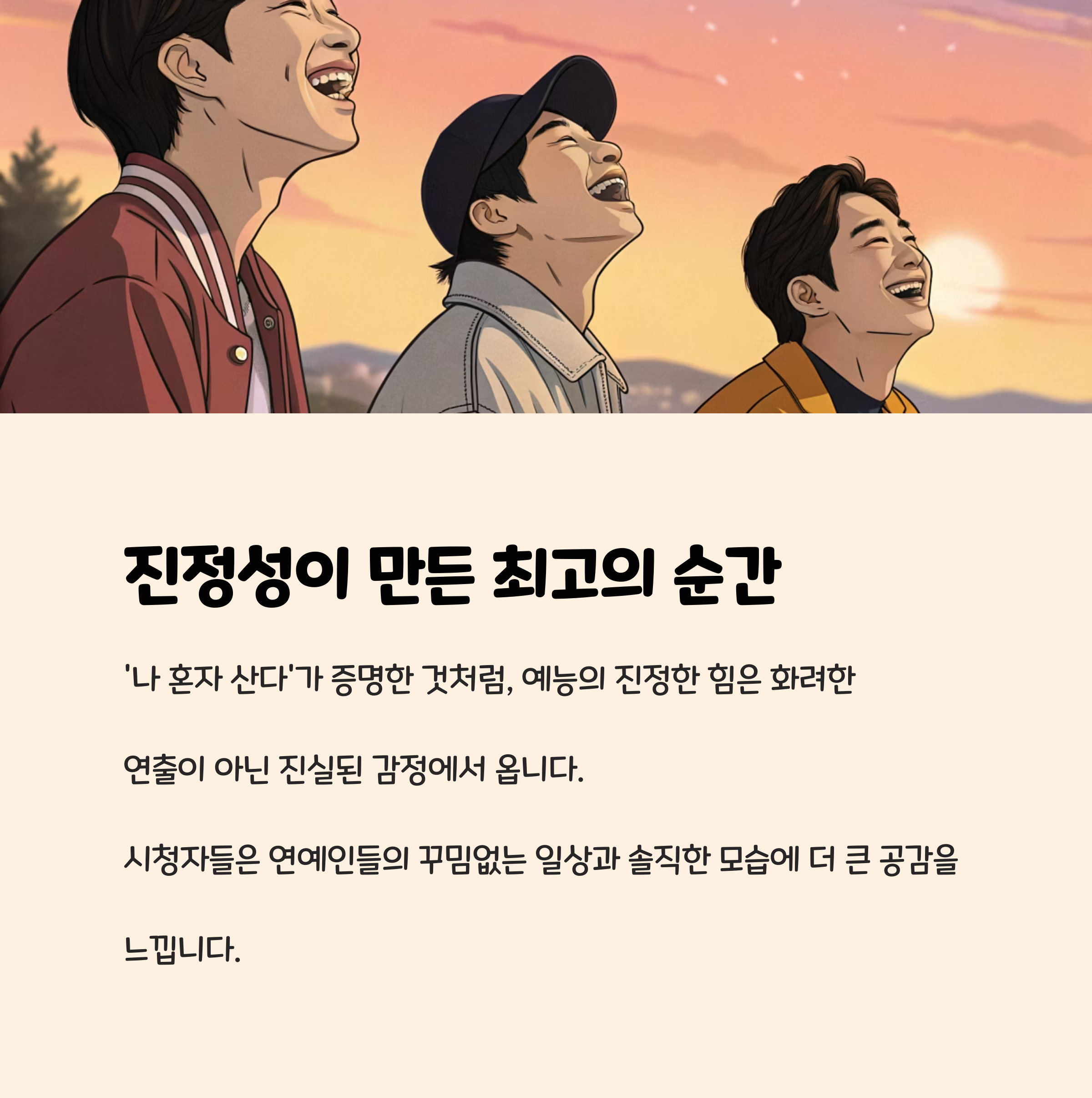 ‘나 혼자 산다’는 출연진들의 진솔한 일상과 인간적인 매력이 시청자들에게 큰 공감을 불러일으키는 프로그램입니다. 각기 다른 개성을 가진 멤버들이 일상 속에서 겪는 소소한 에피소드와, 서로의 삶을 존중하는 따뜻한 분위기가 꾸준한 인기를 견인하고 있습니다.