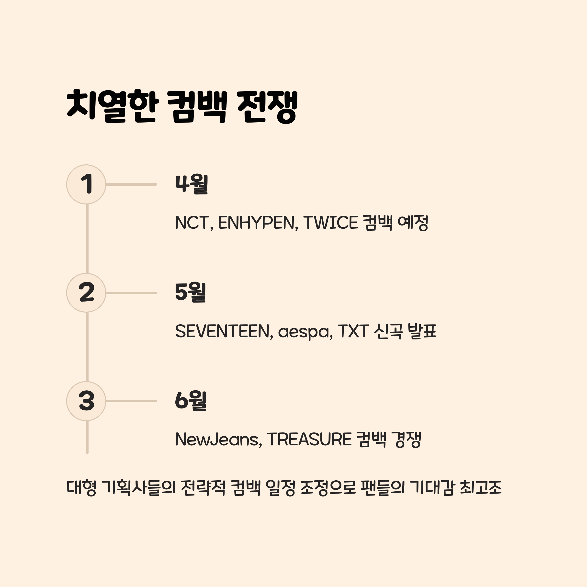 • 팬덤은 겹치는 컴백 일정, 앨범 콘셉트, 무대 구성, 챌린지 확산력 등 다양한 요소에 높은 관심을 보이고 있습니다.