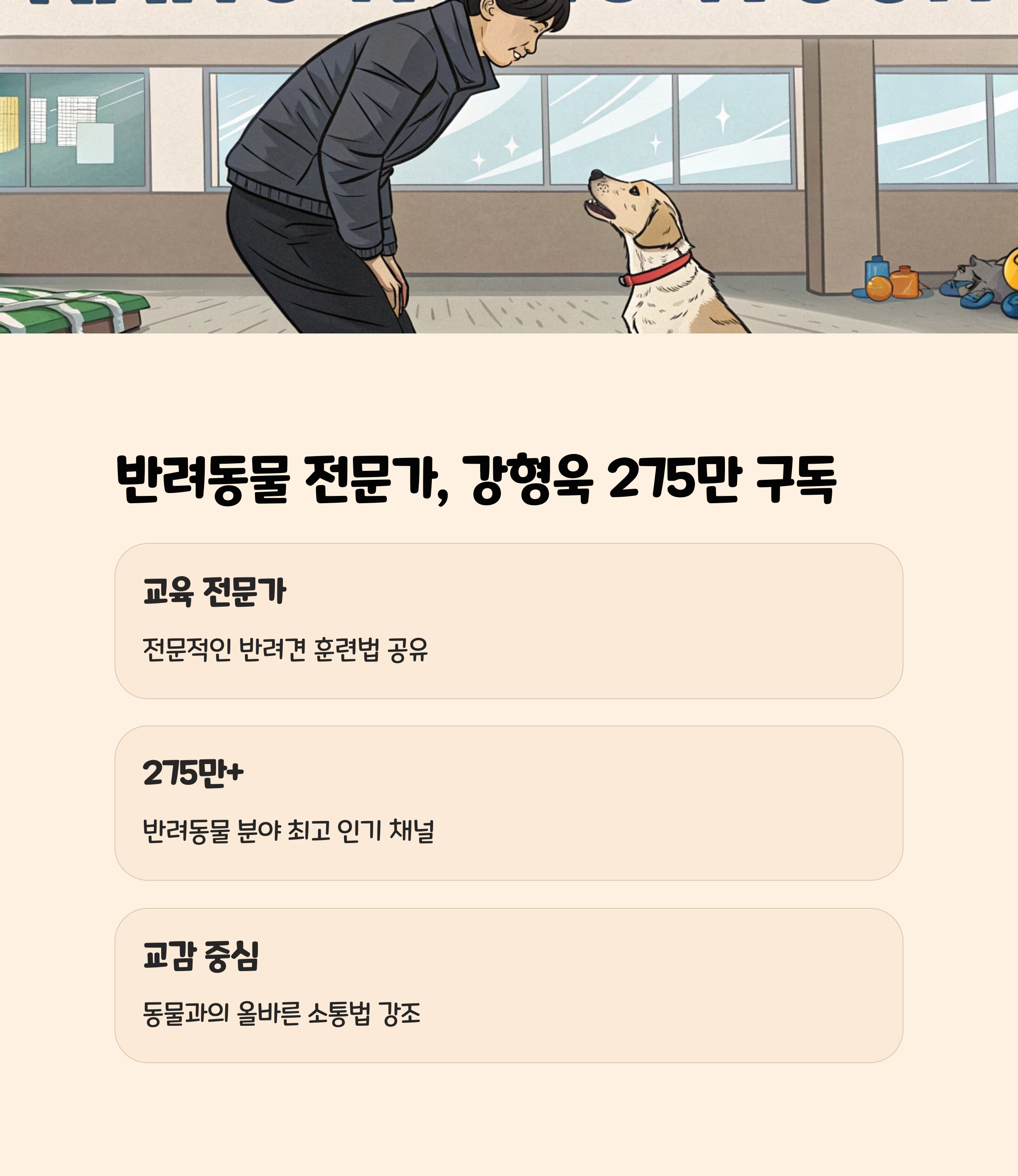 | 5 | 강형욱의 보듬TV | 강형욱 | 275만+ | 반려견 훈련, 상담 |