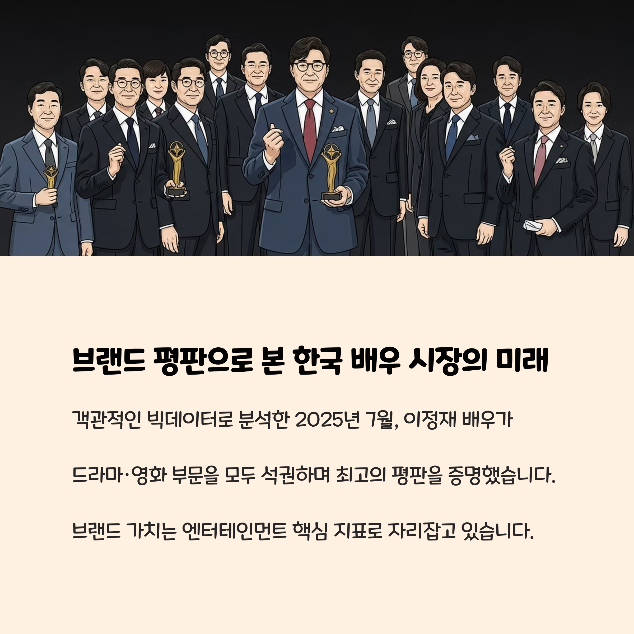 누가 진짜 대세이고 왜 그 배우가 관심을 받는지, 빅데이터 분석을 통해 객관적으로 확인할 수 있는 시대가 왔습니다. 이번 2025년 7월의 드라마·영화배우 브랜드 평판 랭킹이 제공하는 데이터를 적극 활용하면, 다음 시청작 선택이나 스타의 미래를 예측하는 데에도 큰 도움이 될 것입니다.