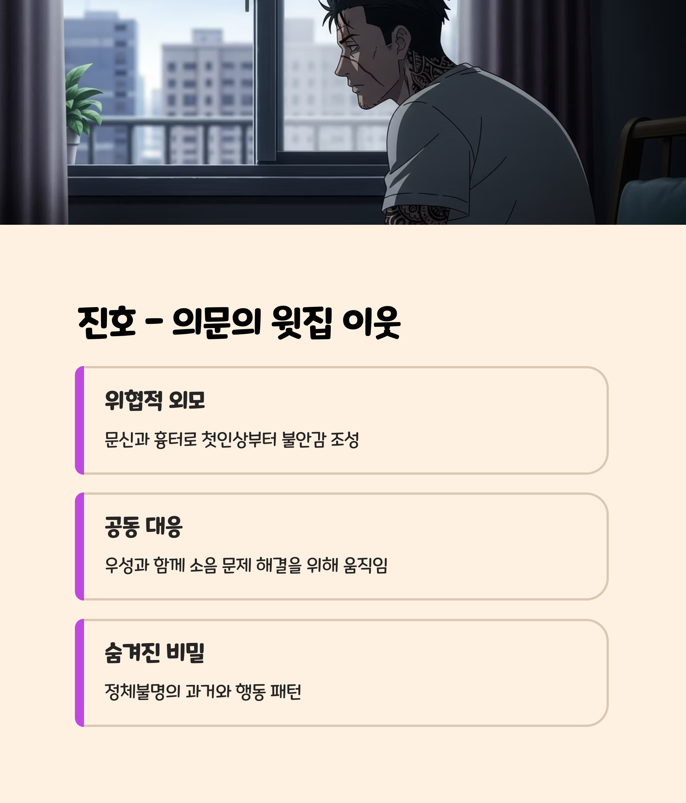 우성(강하늘): 영끌 끝에 내 집을 마련한 청년. 밤마다 들려오는 소리에 점차 망가져 가는 심리 묘사가 압권입니다.은화(염혜란): 아파트 관리대표로, 이웃 간의 미묘한 파워게임과 불신을 증폭시키는 인물.진호(서현우): 윗집 이웃이자 의심스러운 조력자로, 마지막까지 정체가 궁금해지는 캐릭터.