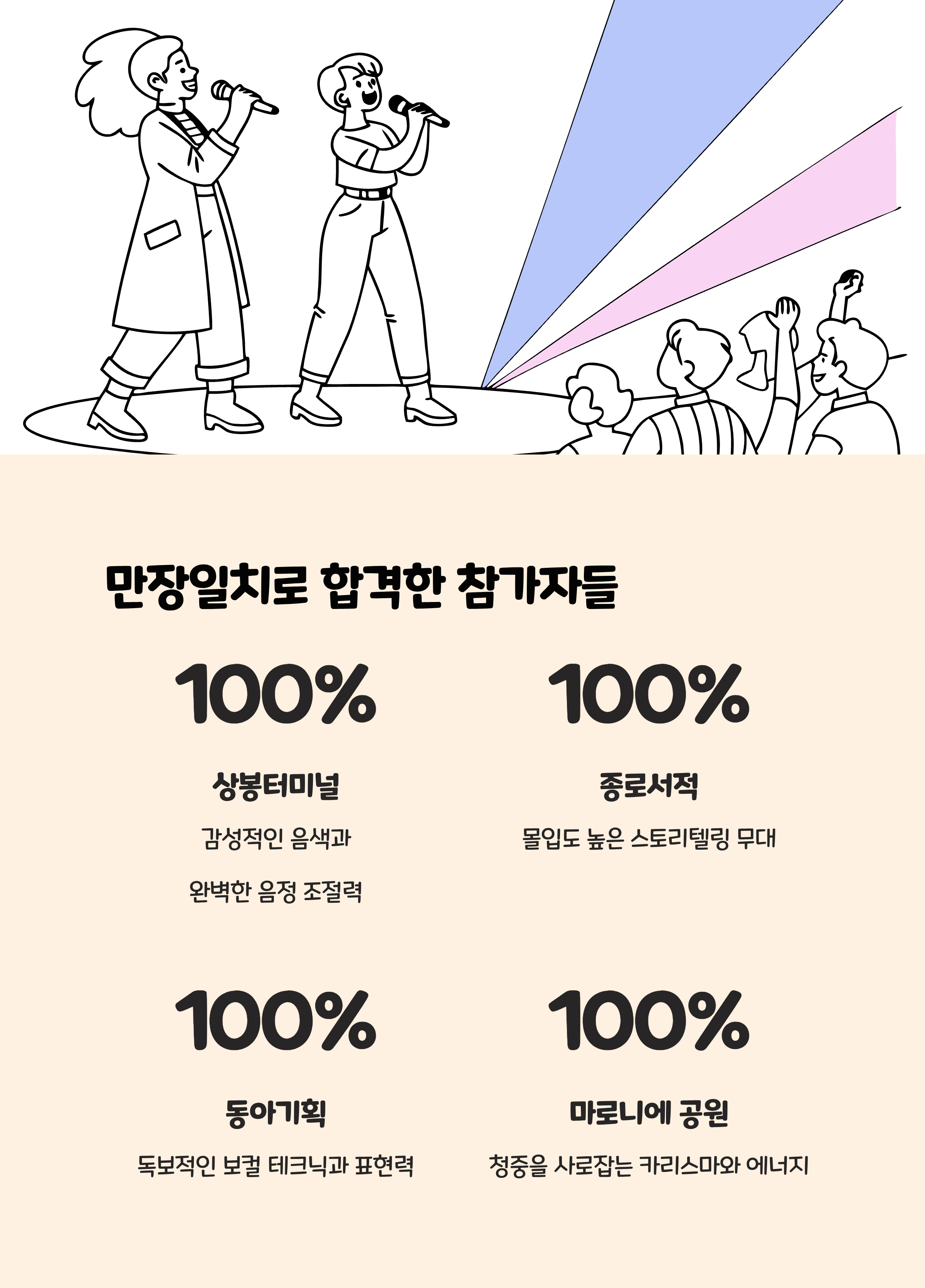 - 탁월한 가창력과 깊은 감성으로 심사위원 만장일치 합격.