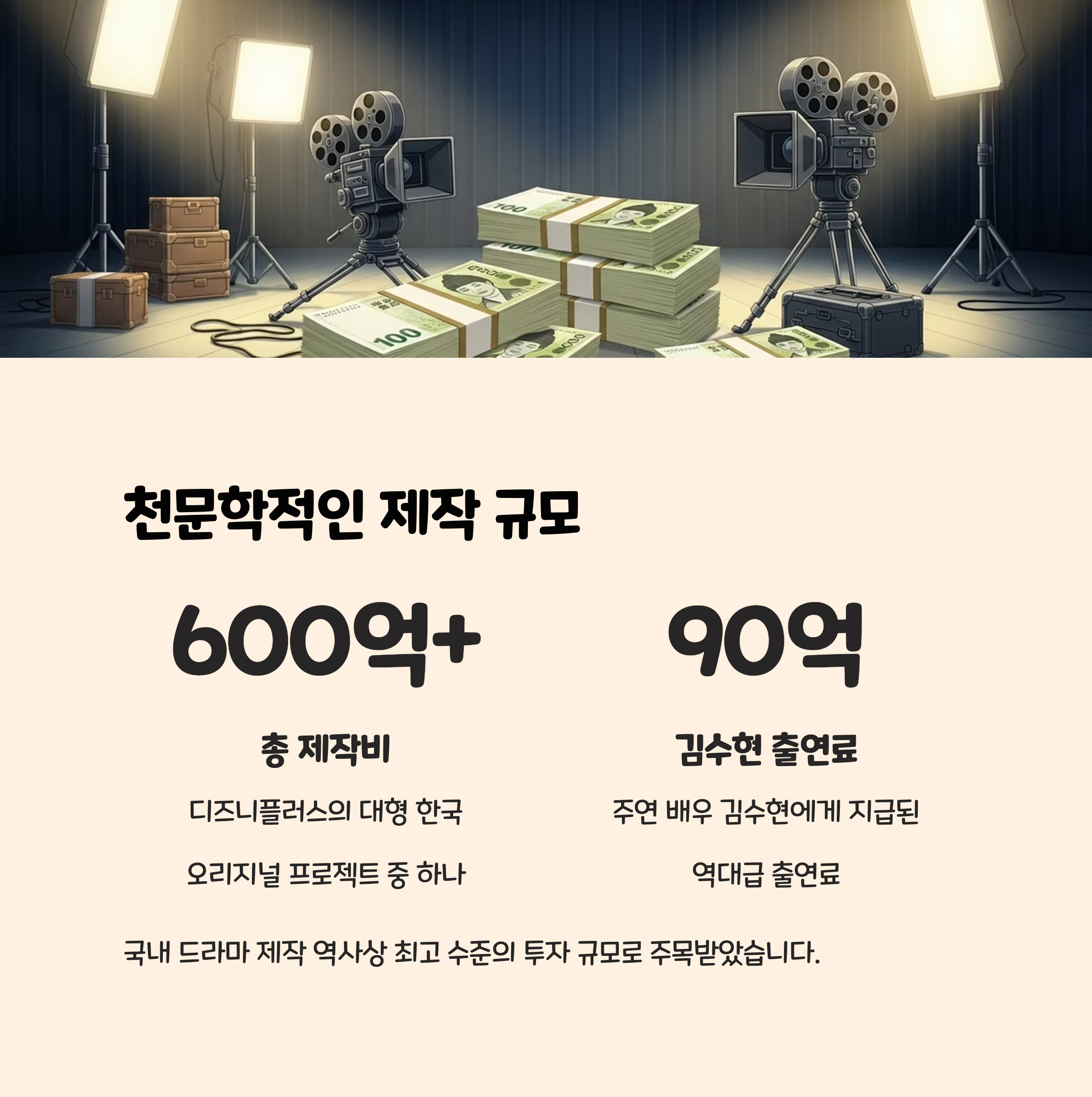 | 김수현 출연료 | 회당 5억 원, 총 90억 원 |